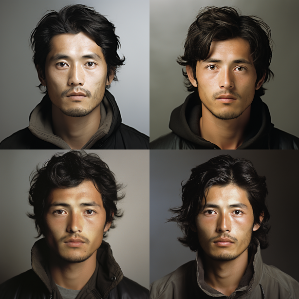 Midjourney Bot 更新时间:2023-08-31 14:55Consistent facial structure, Realistic style, real person photos, Chinese young man with stubble, Alessandra Sanguinetti --iw 0.5 --uplight --ar 1:1 --style raw --v 5.2 --s 750