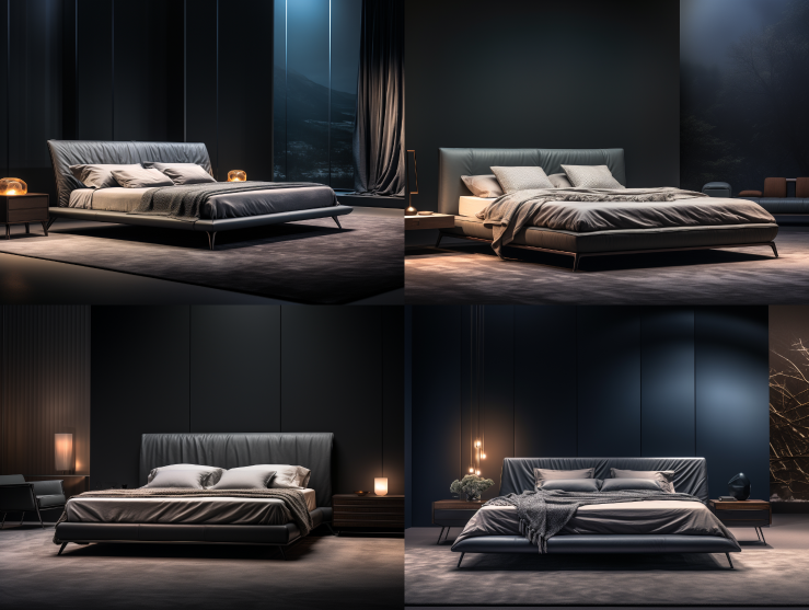 Midjourney Bot 更新时间:2023-08-31 14:50Bed, Minimalist, Clean, Dark Scene --s 750 --iw 1.25 --ar 4:3 --style raw --v 5.2