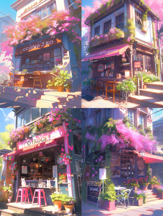 Midjourney Bot 更新时间:2023-08-31 14:46The coffee shop on the street corner is decorated with flowers, exquisite and beautiful, with Dingdall light, sunshine, fine light and shadow, intertwined light and shadow, colorful light spots, masterpiece, exquisite and perfect. Extreme iridescent reflection, Glitter light, beautiful artwork, scenes, watercolor illustration, UHD, 16K, --no Person --ar 3:4 --style expressive --niji 5