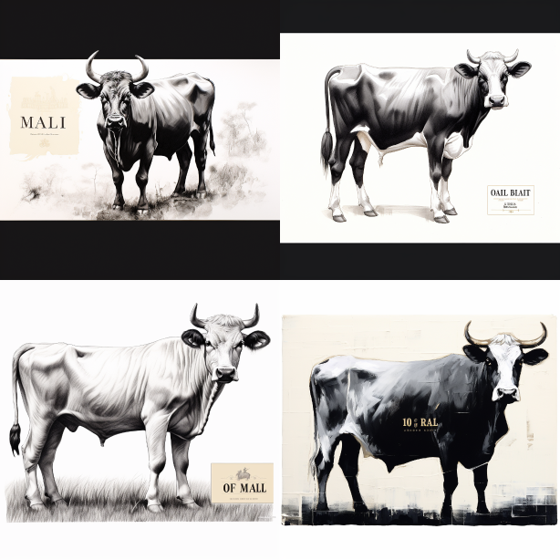 Midjourney Bot 更新时间:2023-08-31 14:48In this sketch, we see a solemn and majestic cow. It stands on the vast grassland, its four hooves deeply sunk in the fertile soil. The body of a cow is tall and powerful, with a robust posture.,The entire picture is dominated by black, white, and gray, giving a sense of simplicity and strength. --ar 1:1 --style raw --v 5.2