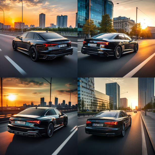Midjourney Bot 更新时间:2023-08-31 14:47The black Audi A6L is parked on the city highway during the sunset. Rear view of the car. --ar 1:1 --style raw --v 5.2