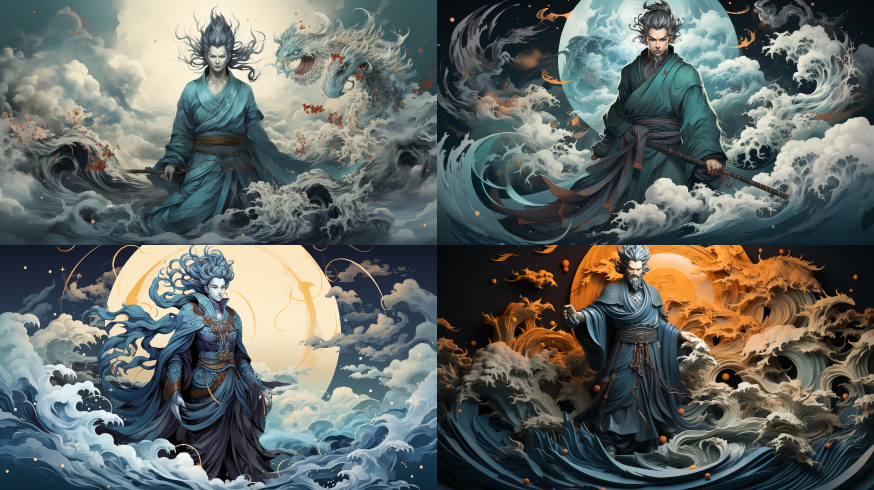 Midjourney Bot 更新时间:2023-08-31 14:57One of the Four Great Heavenly Kings of Buddhism, widely known as the Heavenly King, with a blue face and fangs, holding a Hunyuan umbrella,Daoism,Yin,Yang,Ancient Chinese sword,Chinese ink,Chinese Martial Arts,Chinese dragon,Chinese phoenix,clean background --ar 16:9 --style raw --v 5.2 --s 750