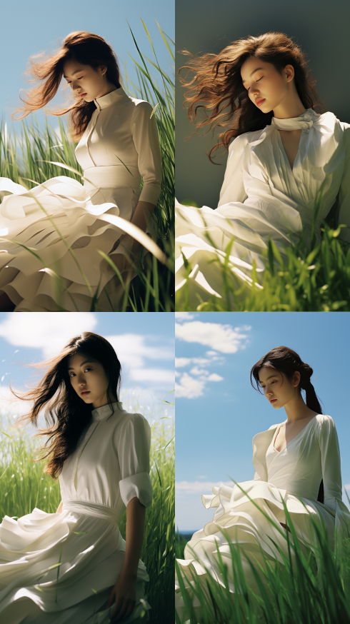 Midjourney Bot 更新时间:2023-08-31 14:19Close-up of a beautiful 16 year old Chinese girl with shoulder-length hair, rolling in the green reeds with white light, full of summer atmosphere, portal shooting, film particles, photography style, rich details, white Chinese dress, in the style of renko kawauchi's photography, sunshine, sunshine on her face, smoothing, light, angle, natural light, Bright, soft, minimalist, clear theme, 4K, Product shooting, Realistic details, perfect photos - AR 3:4 --s 389 --c 23 --ar 9:16 --style raw --v 5.2