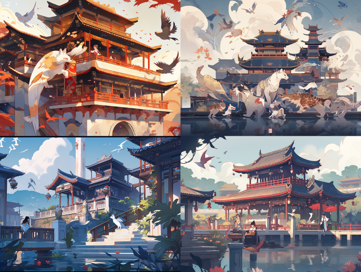 Midjourney Bot 更新时间:2023-08-31 14:28Chinese mythical animals, mixed patterns, close up, Chinese folkloric, clean background, acrylic gouache,Massive line up. Product design research poster of diffetent,flat design,Ikebana,Decals::2,Traditional Chinese architecture,River --ar 4:3 --style scenic --niji 5