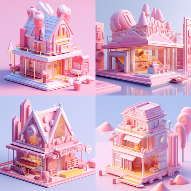 Midjourney Bot 更新时间:2023-08-31 14:20A house shaped like a c4d ice cream, with a pink color scheme. --ar 1:1 --v 5.2 --style raw