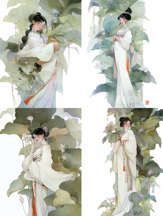 Midjourney Bot 更新时间:2023-08-31 14:05An ancient Chinese woman with watercolor style, transparent watercolor, and plants,Golden Ratio composition,vanishing point,Full body,panorama,Headshot,waist shot,Joey Chou --ar 3:4 --style expressive --niji 5