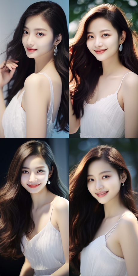 Midjourney Bot 更新时间:2023-08-31 13:59A beautiful 18 year old Chinese girl with long black hair, transparent white skin, a sense of oxygen, natural, bright smile, soft, minimalist, with a light blue light, magazine, and white suspender dress --ar 1:2 --style raw --v 5.2