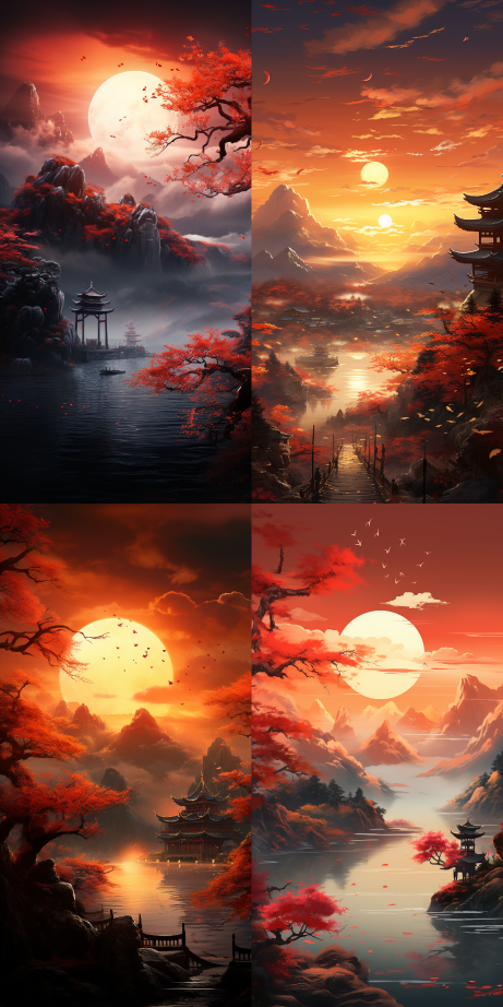 Midjourney Bot 更新时间:2023-08-31 13:54The sunset filled the sky, orange red in color. The distant peaks were like shadows, with white cranes flying above. The pavilion was beside the tea mountain, surrounded by tea leaves, and clouds surrounding it. The entire scene was like a fairyland. The screen is exquisite and delicate, ancient China, with a clarity of 4k and a resolution of 150 --ar 1:2 --style raw --v 5.2 --s 250