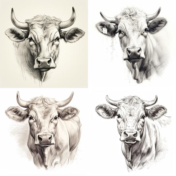 Midjourney Bot 更新时间:2023-08-31 14:03Sketch of a cow, exquisite details. --ar 1:1 --style raw --v 5.2
