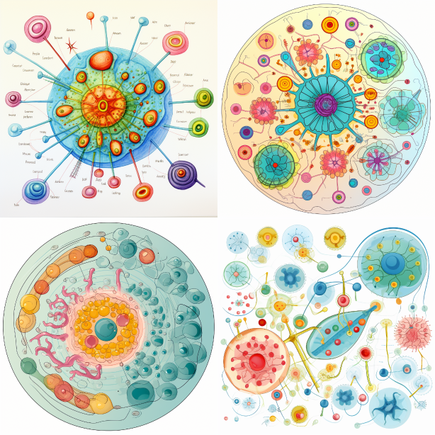 Midjourney Bot 更新时间:2023-08-31 14:06Please help me draw a cell structure diagram --ar 1:1 --style raw --v 5.2
