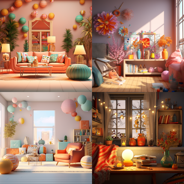 Midjourney Bot 更新时间:2023-08-31 14:04C4D-style home decoration festival scene --ar 1:1 --v 5.2 --style raw