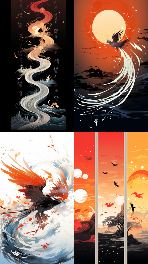 Midjourney Bot 更新时间:2023-08-31 14:02Best illumination, best shadow, an extreme delete and beautiful, Chinese instantaneous beat, Phoenix, Flame, Sunny, Night sky, Spread one's wings, Soar, Shaped like a bridge, Shining stars, Scoring heat, Game CG diagram, Qi Baishi style --ar 9:16 --style raw --v 5.2