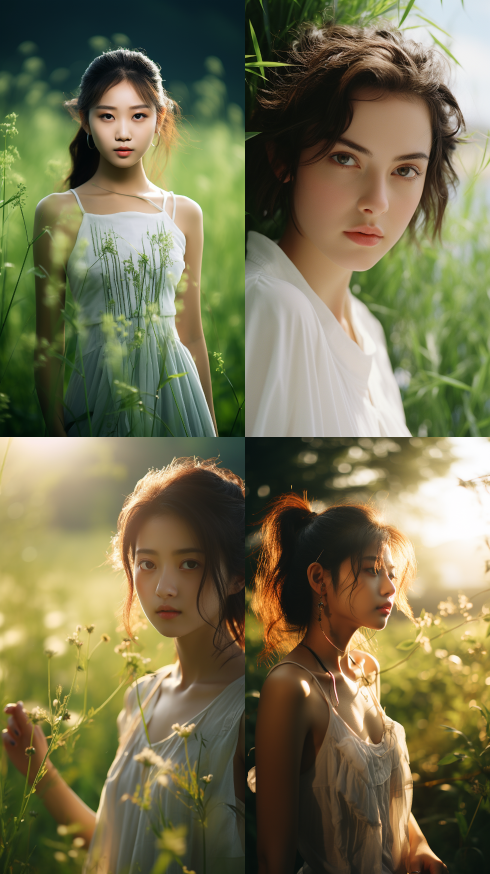 Midjourney Bot 更新时间:2023-08-31 14:06Close-up of a beautiful 16 year old Chinese girl with short hair, strolling in the green reeds, with white light and a summer atmosphere. Portrait shooting, film particles, photography,Style, rich details, white Chinese dress, sunlight, light, angle, natural light, bright, soft, minimalist, clear theme, 4K, product shooting, realistic details, perfect photos - AR 9:16 --s 329 --c 30 --ar 9:16 --style raw --v 5.2