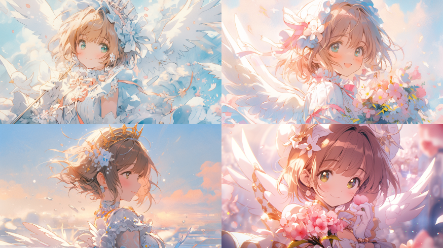 Midjourney Bot 更新时间:2023-08-31 13:55the picture is done in white , in the style of Card Captor Sakura manga style, white feather, blink-and-you-miss-it detail,kawaii aesthetic, high-keyed palette, precisionist art ,Dream colors,low saturation ,maid headdress ,Watercolor paint,Pastel,oil painting --ar 16:9 --niji 5 --s 750