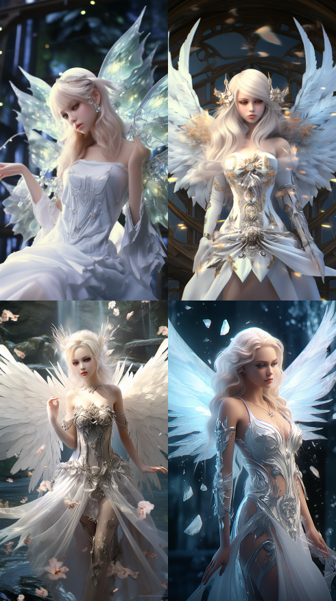 Midjourney Bot 更新时间:2023-08-31 11:05An absolutely stunning artistic masterpiece presented with the highest quality of art. In this intoxicating CG world, there is a girl wearing a knee length skirt with short, pure white hair. Exquisite and complex hair accessories adorn her hair, complementing her transparent wings like water. The eyes of a young girl are like two clear lakes, watery and emitting charming light. She turned her head slightly and smiled, revealing her charming figure. The natural light gently illuminates her figure, and the cinematic lighting texture makes the entire picture more surreal. The white petals falling around her, soft and withering, add a touch of exquisite sadness to the entire picture.,Ponyo,Naoko Takeuchi --ar 9:16 --style raw --v 5.2