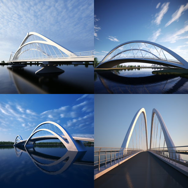 Midjourney Bot 更新时间:2023-08-31 11:05Modern Bridge --iw 0.5 --ar 1:1 --style raw --v 5.2