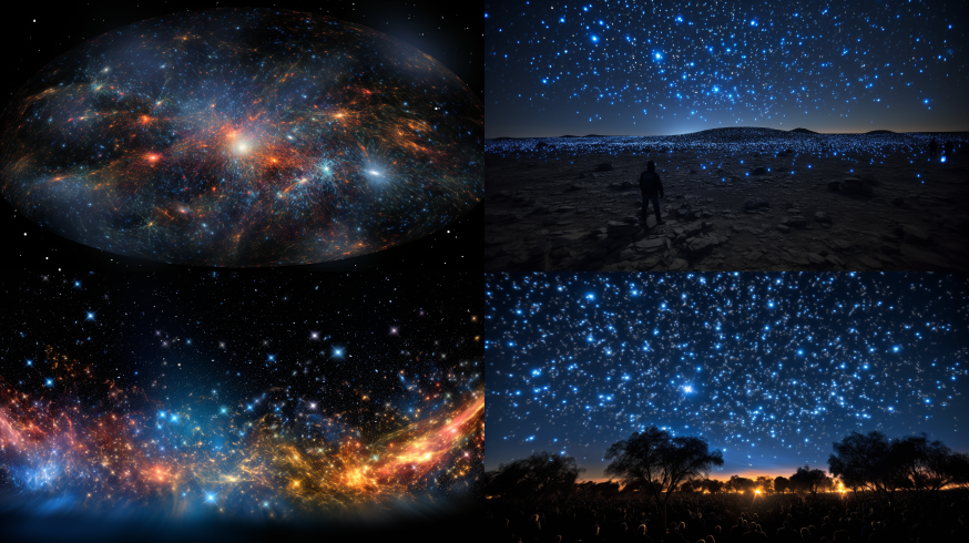 Midjourney Bot 更新时间:2023-08-31 11:10Scientists on Earth show up to look up at the starry universe --c 10 --ar 16:9 --style raw --v 5.2