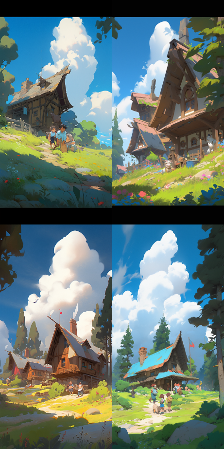 Midjourney Bot 更新时间:2023-08-31 11:08Small wooden houses in the forest, pastoral style, healing painting style, blue sky, white clouds, grass, a group of children playing in the grass --s 150 --ar 1:2 --style expressive --niji 5
