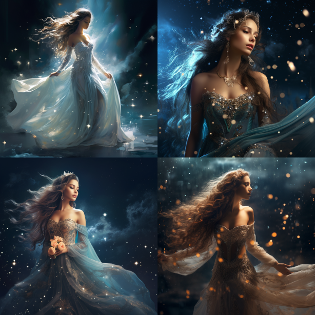 Midjourney Bot 更新时间:2023-08-31 11:14In a hazy dream, a mysterious and beautiful woman appears before your eyes. She is dressed in a flowing and radiant gown, as if woven from stars and moonlight. Her long hair cascades down like a waterfall, emitting an intoxicating floral fragrance. Her eyes sparkle with a faint light, like the brightest stars in the night sky, revealing endless wisdom and mystery. She gracefully floats in the air, her light footsteps accompanied by celestial music, each step releasing a wave of dreamlike atmosphere. Her gentle smile brings tranquility and harmony to the entire scene, as if time has stood still. This goddess of the dream takes you into a realm beyond reality, allowing you to experience the serenity and beauty deep within your soul. --ar 1:1 --style raw --v 5.2