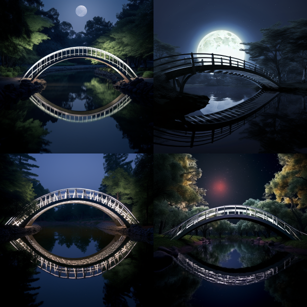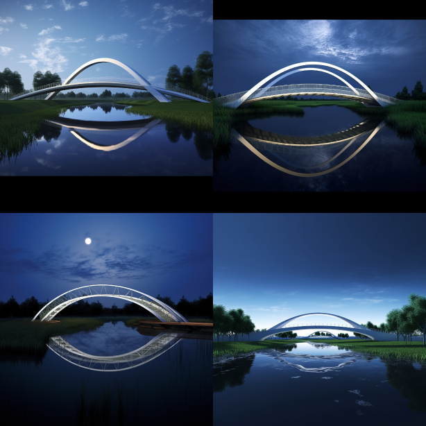 Midjourney Bot 更新时间:2023-08-31 11:01Moon Bridge, modern bridge, wetland environment. --ar 1:1 --style raw --v 5.2