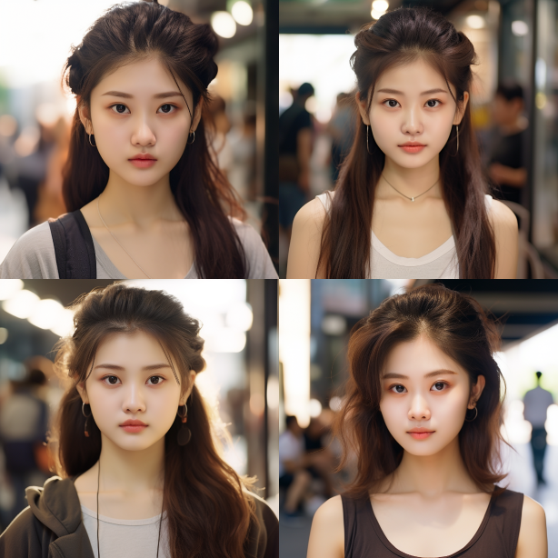 Midjourney Bot 更新时间:2023-08-31 11:01A beautiful 20-year old Japanese girl stands on a street in Japan, looking directly into the camera, Under the event sun, enrich details, manual focus, kadak portra 400nc, SMC Pentax 35mm F2.8AL --s 750 --iw 1.25 --ar 1:1 --style raw --v 5.2