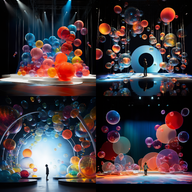 Midjourney Bot 更新时间:2023-08-31 10:58This is a mysterious and fascinating theatrical stage space. The entire scene adopts symbolism and minimalist style, immersing the audience in a dreamlike atmosphere. In the center of the stage stands a wardrobe-shaped structure, made of transparent material, allowing the colorful ocean balls inside to be clearly visible. These spheres represent childhood memories, each one shimmering with endless colors and vitality. When the light shines on the ground, their reflections are projected onto the floor, creating a strange and enchanting sight that showcases the beauty of the entire wardrobe once again. This reflection symbolizes the significant influence of childhood experiences on our values and beliefs as we grow up, cleverly connecting our past with the present. The space exudes a feeling that is both unfamiliar and familiar, irresistibly immersing people in it. At the same time, the sense of being trapped conveyed by the stage, "neither able to move forward nor retreat," triggers people to contemplate their own situation and evokes a deeper resonance. --ar 1:1 --style raw --v 5.2