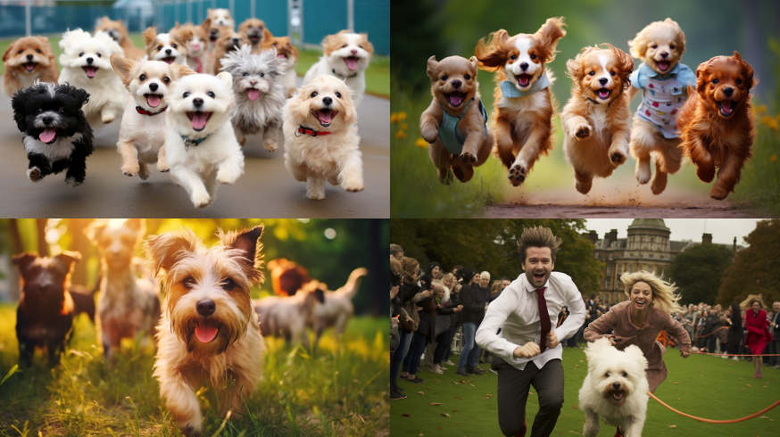 Midjourney Bot 更新时间:2023-08-31 10:59Dogs and owners running on the grass --c 50 --ar 16:9 --style raw --v 5.2