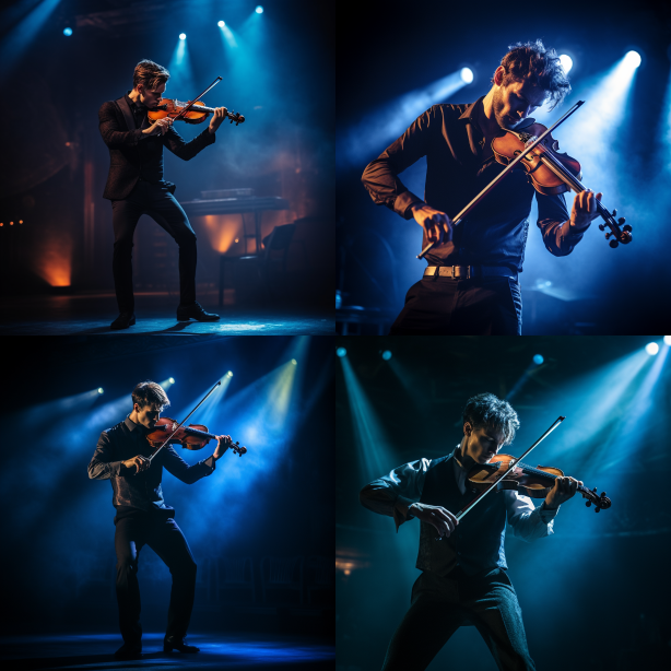 Midjourney Bot 更新时间:2023-08-31 10:58Describing a Roberta musician performing a violin in the spotlight on a gorgeous stage, with his upper body, background blurry, eyes bright and vivid, facing the audience, mouth closed, movie tones, and surreal details --ar 1:1 --style raw --v 5.2