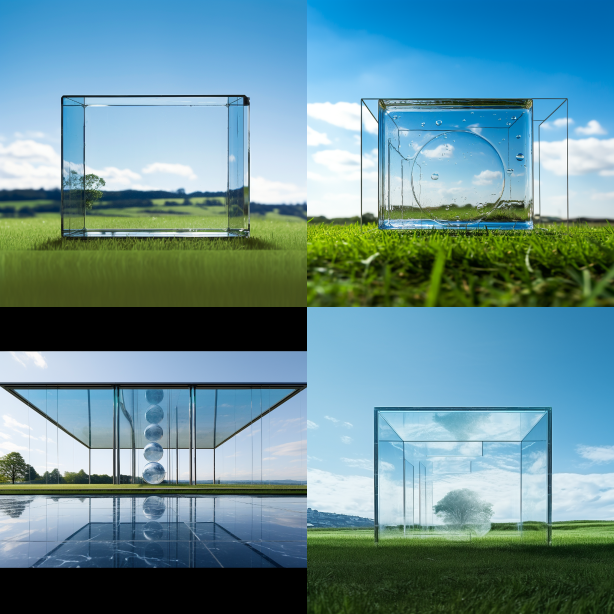 Midjourney Bot 更新时间:2023-08-31 09:46Blue sky, green grass, large area of glass, metal frame, water drop landscape --iw 0.5 --ar 1:1 --style raw --v 5.2