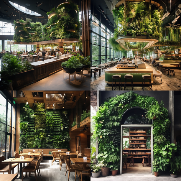 Midjourney Bot 更新时间:2023-08-31 09:46In a 450-square-meter fast food restaurant, you step into a surprising world. This place is filled with a natural atmosphere and green vitality. As you enter the entrance, the first thing that catches your eye is a huge and spectacular green vertical flower wall. These lush plants emit a fresh scent, injecting vitality into the entire space. The interior design of the fast food restaurant follows the principles of environmental protection, using a lot of pearl white and wood colors as the main tones. You will find that the green hanging lights hanging from the ceiling are like floating steam, illuminating the entire space and creating a comfortable and warm atmosphere. You can find comfortable seats in the spacious dining area, ready to taste freshly steamed chicken delicacies. The large glass windows allow sunlight to pour into the room, warm and bright, blending natural light with green plants. Each table has exquisite vases filled with unique mini plants, adding a touch of poetry and vitality to the dining area. The overall design concept of the fast food restaurant is to combine nature with modern elements, giving people a feeling of returning to nature. Whether dining or leisure, you can feel the atmosphere of green, environmental protection, and relaxation, making your dining experience a journey of harmonious coexistence with nature. --ar 1:1 --style raw --v 5.2
