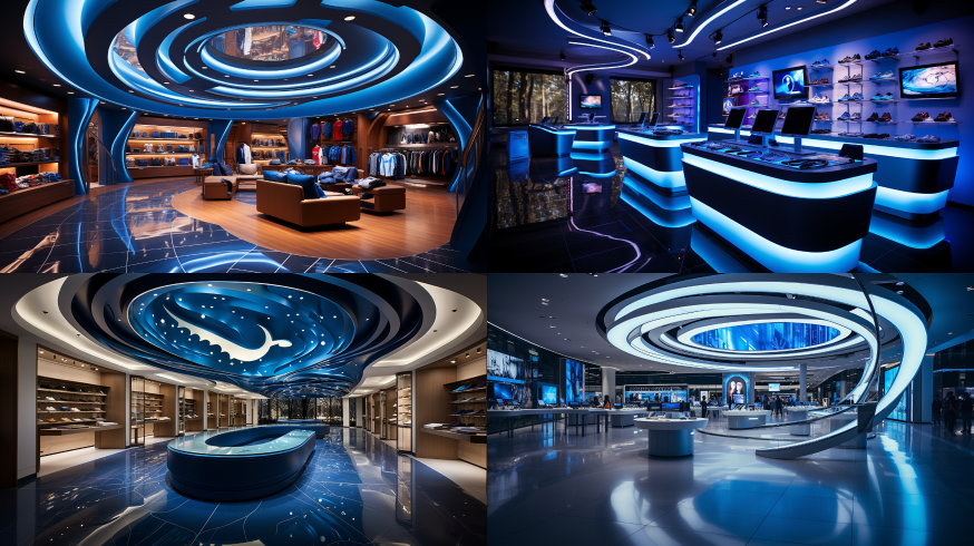 Midjourney Bot 更新时间:2023-08-31 09:41A Huge high tech sport store made of blue skin, Walls modern nike store in the form shopping mall, Metal tube garment frame, main DP island design, front shoe wall, LED illuminated light bar, ceiling for LED strip light, Interior design 8k, high resolution, 16K, mathematical style, Yohji Yamamoto, Bright lighting environment, exit materials,high resolution,16K,cinematic style,Yohji Yamamoto --s 774 --ar 16:9 --style raw --v 5.2