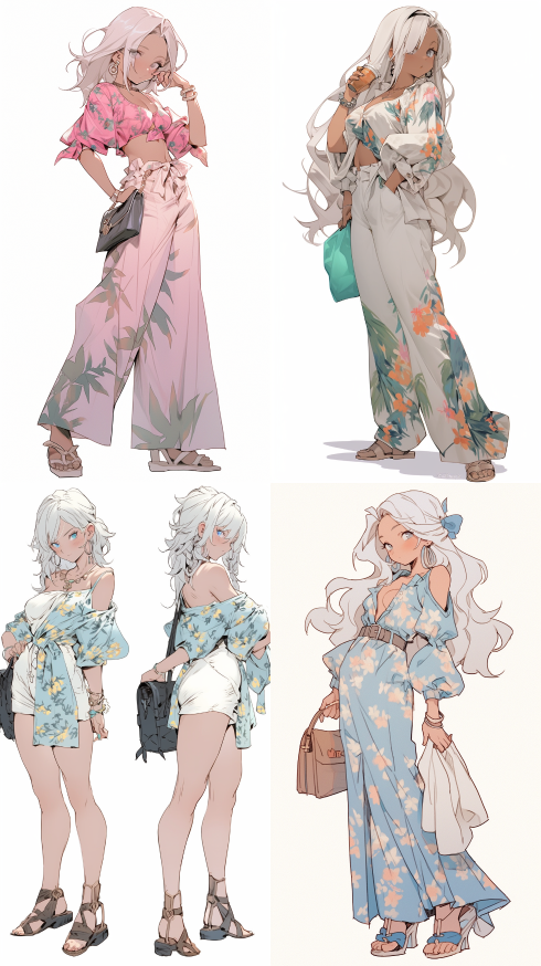 Midjourney Bot 更新时间:2023-08-31 09:41A girl wear each output which was cellular style dress front view, and she's clothes are intricately designed, (full body),,half body shot,Dream colors,delicate skin texture,Best quality,pink hair,beach outfit,coastal grandmother outfit,hair over shoulder,character design,full body character design,Full body::3,Ornament,cosplay outfit,full lipsheavy bright makeupnatural volumetric,clean background,Genshin Impact,posh outfit,bon chic bon genre outfit ,silver hair,pink hair,glamour outfit,girly outfit::2,beach outfit,character design,full body character design,Full body --s 180 --ar 9:16 --style expressive --niji 5
