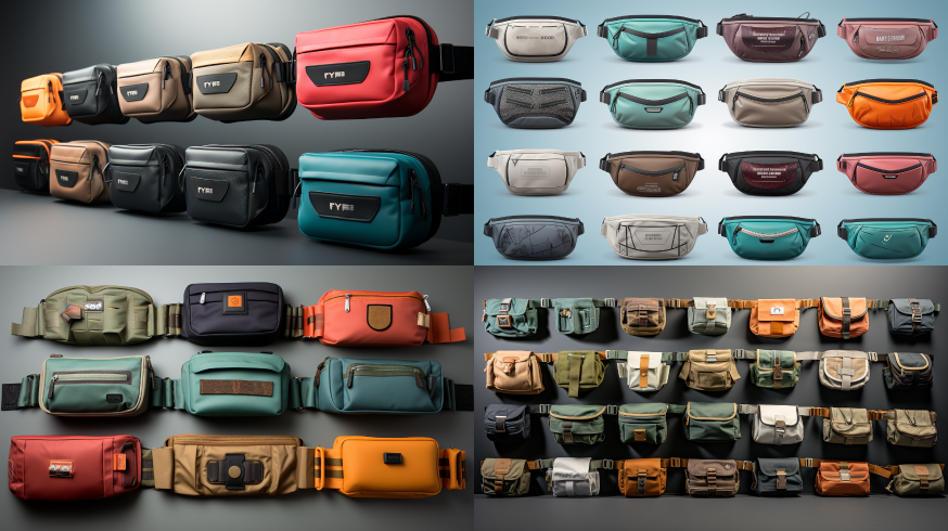 Midjourney Bot 更新时间:2023-08-31 09:46An image showing different styles and designs of Trade Professional Waist Bags This image serves to show the different styles of fanny packs, from case to trend as well as sporty styles, so that the reader can visualize the options available --ar 16:9 --style raw --v 5.2 --s 250