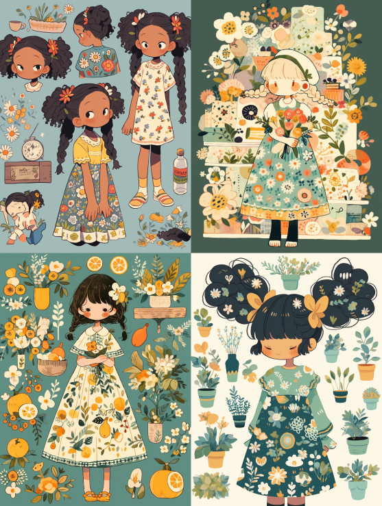 Midjourney Bot 更新时间:2023-08-31 09:41Little girl, plants, Mr. Becca doodlefly's art, Y2K style, mixed patterns, flat illustrations, stickers, Mandala, Headshot, wait shot, Half Body,Decals::2 --s 180 --ar 3:4 --style cute --niji 5