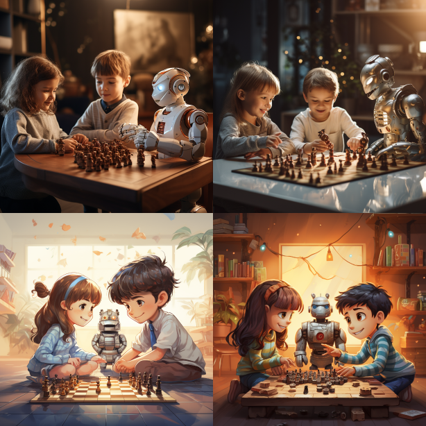 Midjourney Bot 更新时间:2023-08-31 09:23Two children and two robots playing flying chess together --ar 1:1 --style raw --v 5.2 --s 250