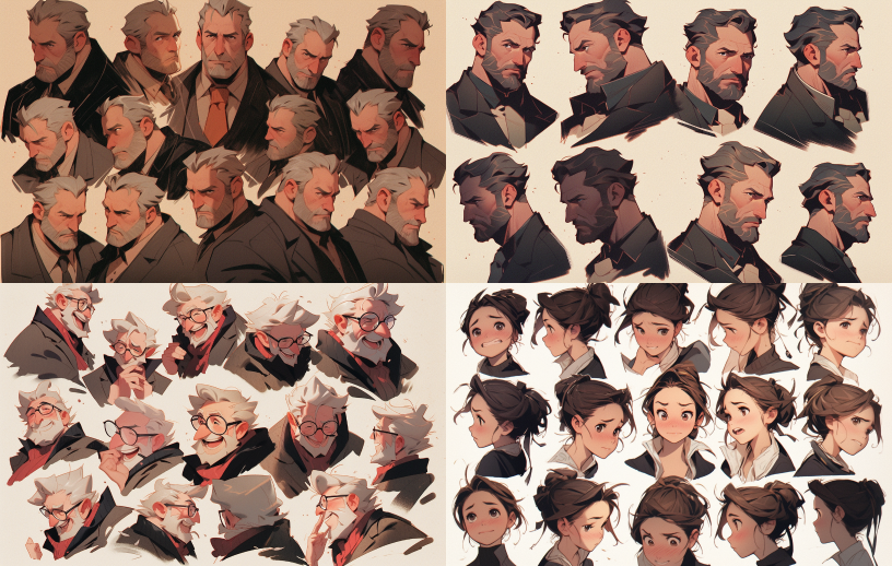 Midjourney Bot 更新时间:2023-08-31 09:05A different drawing of different faces, in the style of Klaus pillon, disney animation, Giovanni (nino) Costa, lifelike renderings, angled forms, strong financial expression, designated positions,character design multiple poses --ar 41:26 --niji 5 --s 750