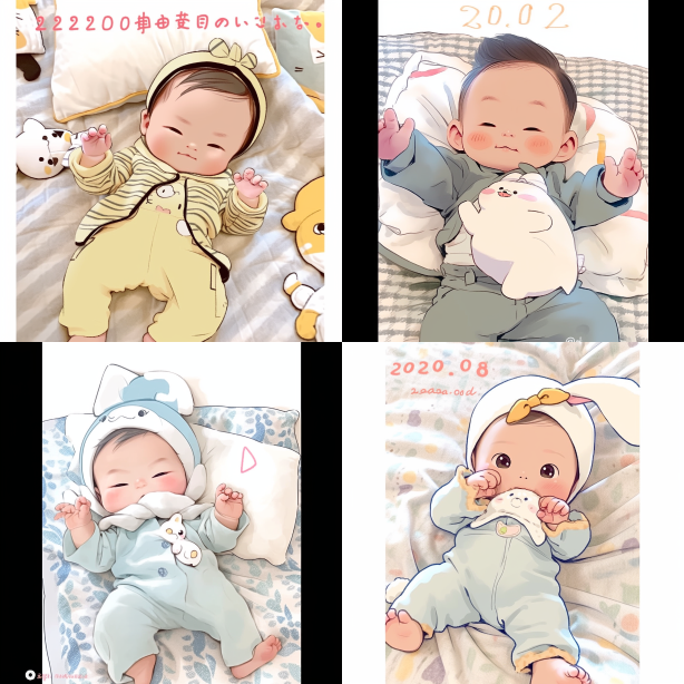 Midjourney Bot 更新时间:2023-08-31 09:17Image of a 2-month-old baby, cute anime image --iw 1.25 --ar 1:1 --style expressive --niji 5 --s 750