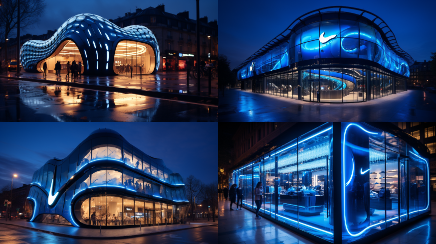 Midjourney Bot 更新时间:2023-08-31 09:19A Huge high tech sport store made of blue skin,Walks modern nike store in the form shopping mall,Interior design 8k --s 0 --iw 2 --ar 16:9 --style raw --v 5.2