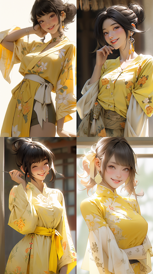 Midjourney Bot 更新时间:2023-08-31 09:11A Chinese woman wearing light yellow complex clothing, with Chinese architecture, high definition image quality, super details, cosplay, sunshine, light and shadow effects, mathematical image quality, smile, high brightness --ar 9:16 --style expressive --niji 5 --s 250