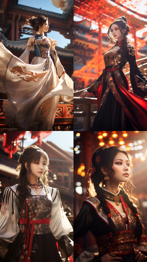 Midjourney Bot 更新时间:2023-08-31 09:23A Chinese woman wearing complex clothing, with Chinese architecture, high-definition image quality, super detail, soft light, cosplay, light and shadow effects, cinematic image quality, smile, anime --ar 9:16 --style raw --v 5.2 --s 750