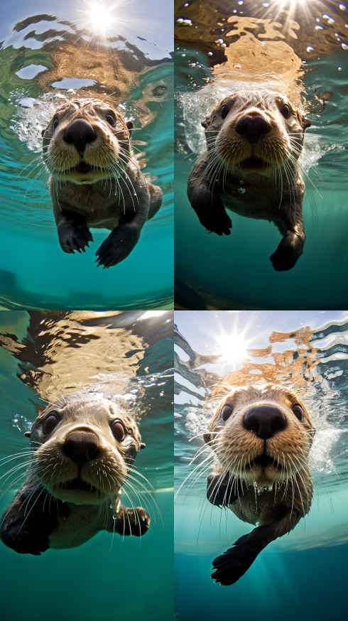 Midjourney Bot 更新时间:2023-08-31 09:12Cut, real photography, little sea otter, sunshine under the water --ar 9:16 --style raw --v 5.2