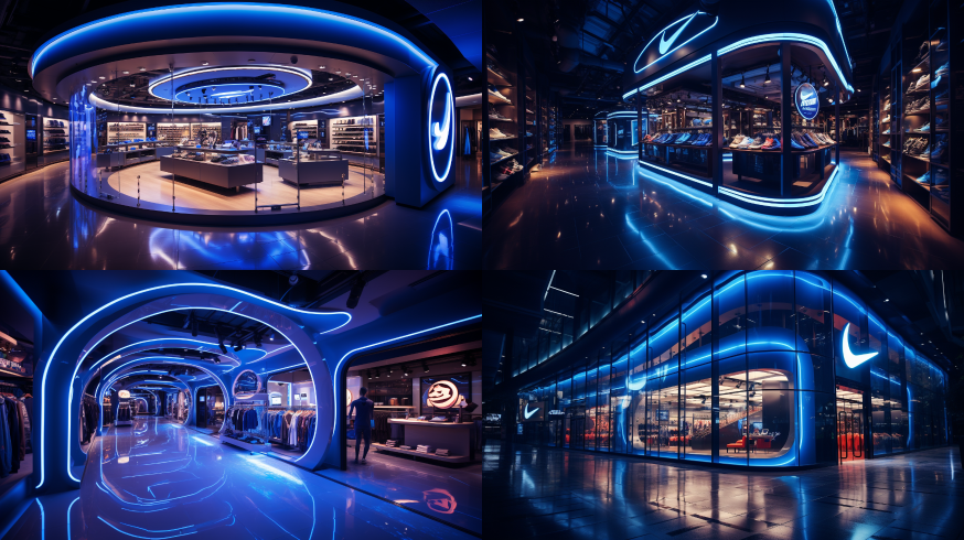 Midjourney Bot 更新时间:2023-08-31 09:18A Huge high tech sport store made of blue skin,Walks modern nike store in the form shopping mall,Interior design 8k --s 403 --ar 16:9 --style raw --v 5.2