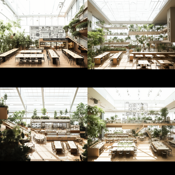 Midjourney Bot 更新时间:2023-08-31 08:18This environmentally friendly dining space is a stunning place with an area of 450 square meters. When you step into this space, you will immediately feel the fresh air and green environment, as the entire space is surrounded by green plants and natural light. The designer cleverly uses renewable energy to provide sustainable power supply for the space. The floor plan shows a modern fast food area with 200 seats. The seats are arranged to be spacious and comfortable, without compromising the privacy between customers. Each seat is equipped with comfortable furniture and provides power outlets and USB ports for customers to charge or use their mobile devices while dining. The entire space seamlessly connects the fast food area, service counter, and kitchen. The service counter displays a variety of delicious food, allowing customers to easily choose their favorite dishes. The kitchen uses energy-saving equipment to minimize energy consumption and waste generation. In addition to the environmentally friendly design, this dining space also focuses on sustainable development. A waste sorting system is cleverly integrated throughout the space to facilitate customers in sorting and disposing of garbage. Furthermore, water resources are effectively utilized, collected, filtered, and reused for flushing and irrigation. In this environmentally friendly dining space, you can enjoy delicious food while feeling the care and responsibility for the environment. Whether with family, friends, or alone, it is a pleasant place where you can create wonderful memories in a comfortable environment. --ar 1:1 --style raw --v 5.2 --s 750