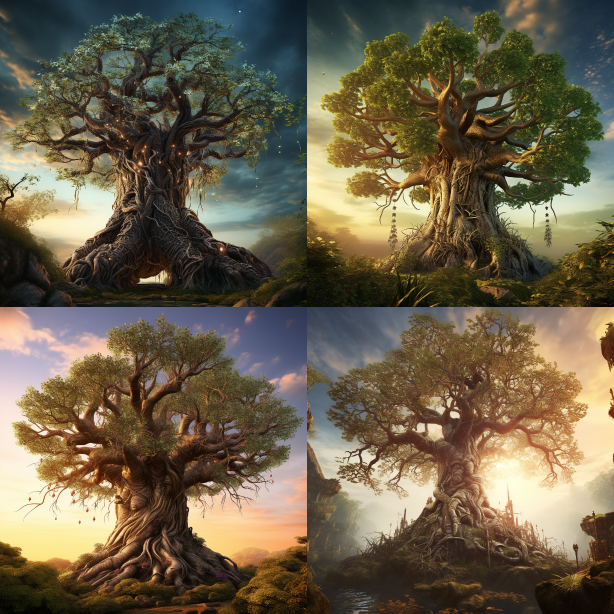 Midjourney Bot 更新时间:2023-08-31 08:54In a mesmerizing 3D scene, a magnificent tree soars into the sky. The trunk stands tall and straight, resembling a majestic tower, exuding an ancient and solemn aura. Countless tiny branches and nodes adorn it, as if they were memories of countless years. The branches extend in all directions, like giant tentacles, weaving a unique network-like structure in the air. The foliage is dense and lush, presenting a rich green hue. As it gently sways in the breeze, it releases a refreshing and pleasant fragrance. Sunlight filters through the gaps in the leaves, casting dappled shadows and adding a mysterious and warm atmosphere to the entire scene. Underneath the tree, a meadow stretches out, with delicate and soft grass that makes one feel as if they are in the countryside. There are also small animals jumping and running around, creating a vibrant and harmonious tableau of life. All of this forms a captivating natural landscape, making one feel as if they are in a magical and peaceful dream. --no Worst quality, low quality, medium quality, deleted, low resolution, manga, (watermark) --ar 1:1 --style raw --v 5.2