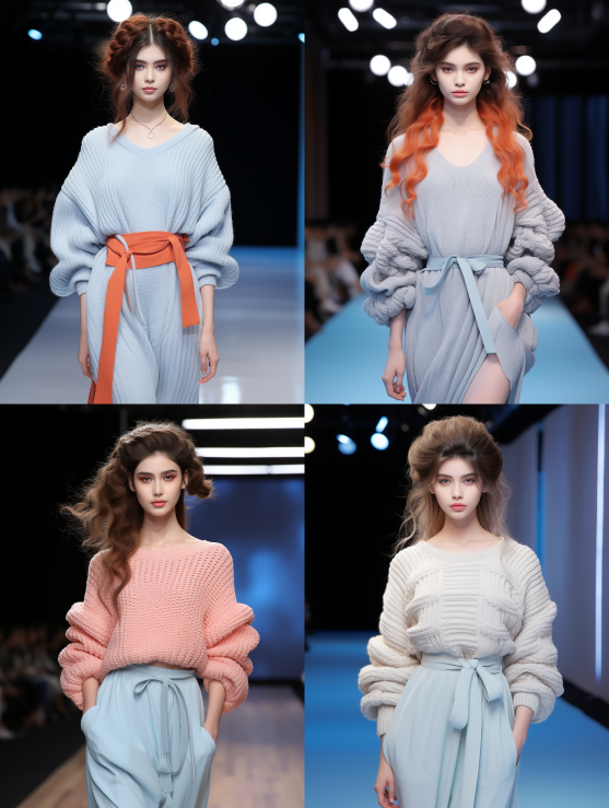 Midjourney Bot 更新时间:2023-08-31 09:02Chinese style, Korean girl, exquisite facial features, big eyes, wearing a knitted sweater, bubble sleeves, weaving, hem stitching fur, background runway show,,full lipsheavy bright makeupnatural volumetric,delicate skin texture,Best quality,UHD,hair flower --ar 3:4 --style raw --v 5.2 --s 750