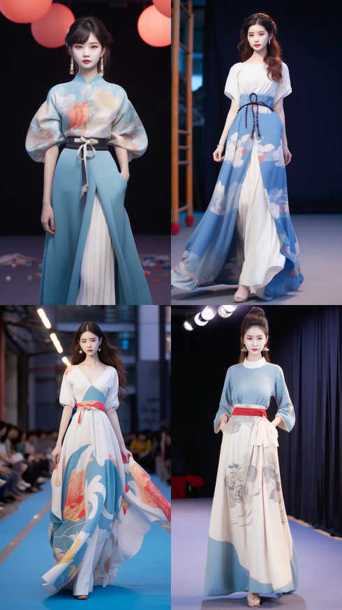Midjourney Bot 更新时间:2023-08-31 08:48In a new Chinese style, a Korean girl is wearing a retro needed twisted flower dress made of knit fabric, need knit switch craft, lane sleeps at the cups, fox hair stitching craft, long skirt, large skirt hem, fox hair stitching craft, with a runway show and fashion show in the background, Full lipsheavy bright make up natural volumetric, delete skin texture, Best quality, UHD, hair flower, hair bun, 1940s fashion, white and green tones --ar 9:16 --style raw --v 5.2