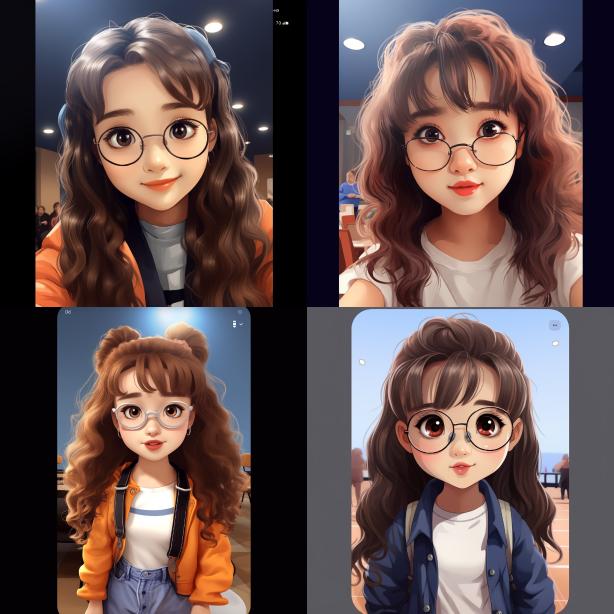Midjourney Bot 更新时间:2023-08-31 00:59Cute cartoon girl --iw 1.25 --ar 1:1 --style raw --v 5.2 --s 250