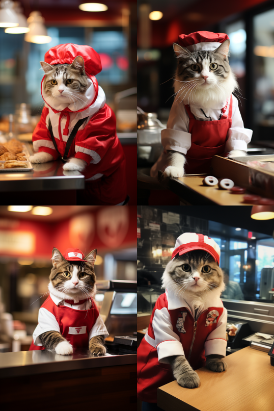 Midjourney Bot 更新时间:2023-08-31 01:14A cat standing in KFC clothes selling hamburgers at KFC --ar 2:3 --style raw --v 5.2 --s 250