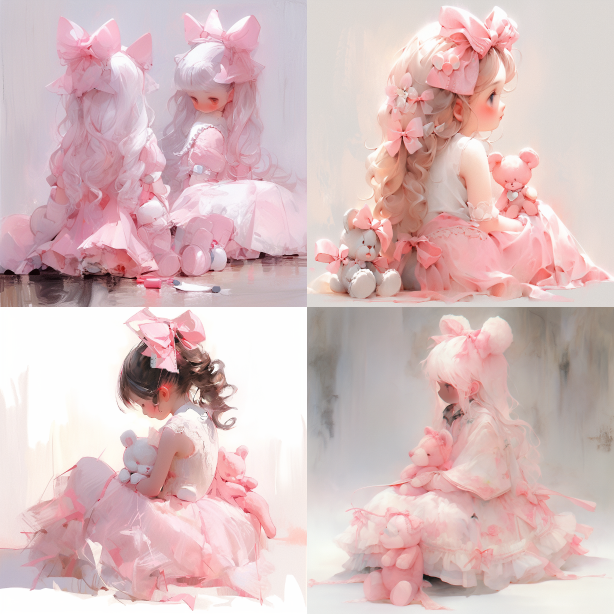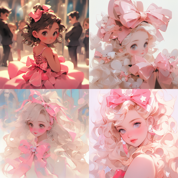 Midjourney Bot 更新时间:2023-08-31 01:16A cute anime girl with a pink bow and a round face. She wears a pink doll dress. The high saturation and reflective colors create a translucent pink tone. It is in the style of Krenz Cushart, with the whole body depicted. --s 201 --ar 1:1 --niji 5