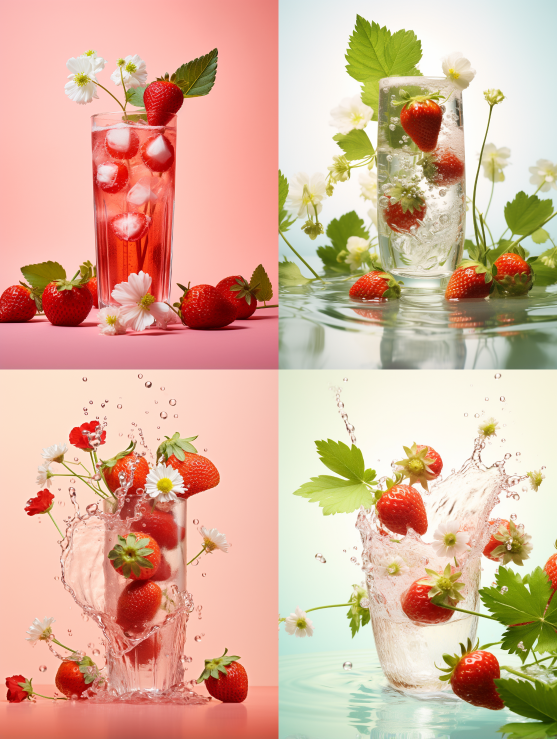 Midjourney Bot 更新时间:2023-08-31 01:32Beverage photography, inspired by the refreshing feeling of summer, reminders people of the summer of nature Strawberry, flowers, leaves, minimalist style, focus on products, natural realism photography, high resolution, fine details, 8k - ar 3:4 --iw 0.5 --ar 3:4 --style raw --v 5.2